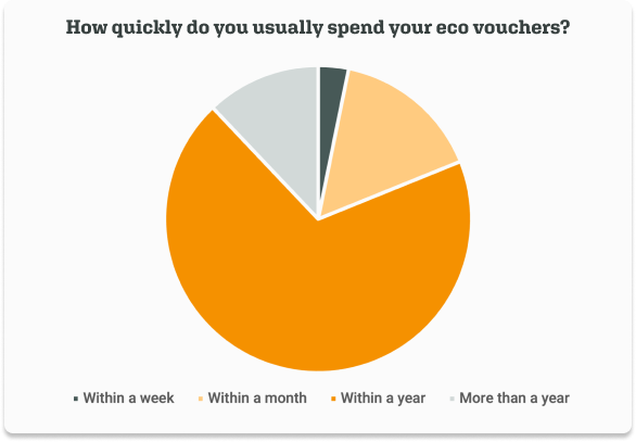 Our beneficiaries don’t let their eco vouchers sit unused. 88% spend them within the first year, of which 19% already do so within the first month.
