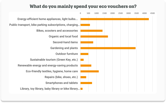Another rapidly growing use: everything related to cycling. Eco vouchers are massively used to invest in a (electric) bike, cover repair costs, or purchase accessories.