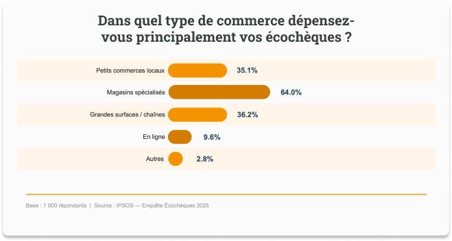 Au-delà de son impact sur les ménages, l’écochèque joue également un rôle important pour l’économie locale. Plus d’un tiers des bénéficiaires les dépensent dans des commerces de proximité, une proportion qui atteint 41% chez les 18–34 ans. Pour de nombreux petits commerces, ces dépenses représentent une part non négligeable du chiffre d’affaires, en particulier dans les secteurs liés aux équipements durables.