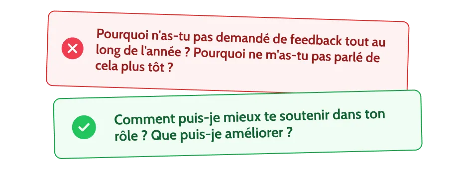 Un feedback qui sort de nulle part peut être déroutant et démoralisant. Assurez-vous que vos remarques sont bien réfléchies et étayées.